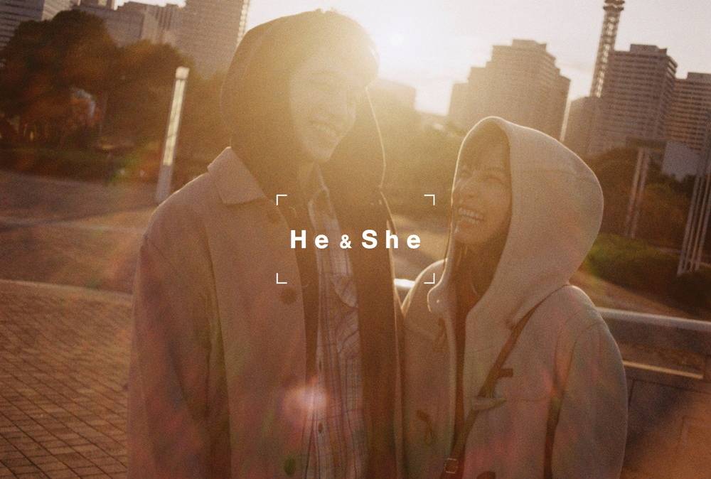 「He & She」は男女の普遍的ともいえる何気ない日常や風景を描いたひとつの楽曲を、男性ボーカル&女性ボーカルがそれぞれに歌唱するプロジェクト。彼と彼女がそれぞれの想いを同じ言葉に込めて歌うことにより、ひとつの景色をより色鮮やかに描き出している。