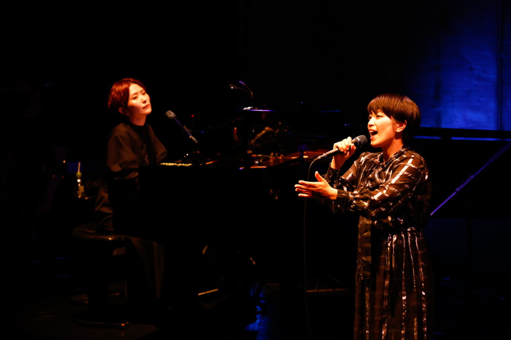 最初のMCでは、久々にお客さんの前で歌える喜びを語りながら、ステージと客席の距離の近さに「めっちゃ肉眼!」と言って驚いてみせる。そのくらいよく見えると、お客さんが泣いていたりする姿を見て、自分もうるっときてしまうことがあるのだそう。また お酒を飲みながら、お食事しながら音楽を楽しんでもらう形式のライブができるようになったことについて、お客さんと一緒に大人になったんだなぁとしみじみと語る。