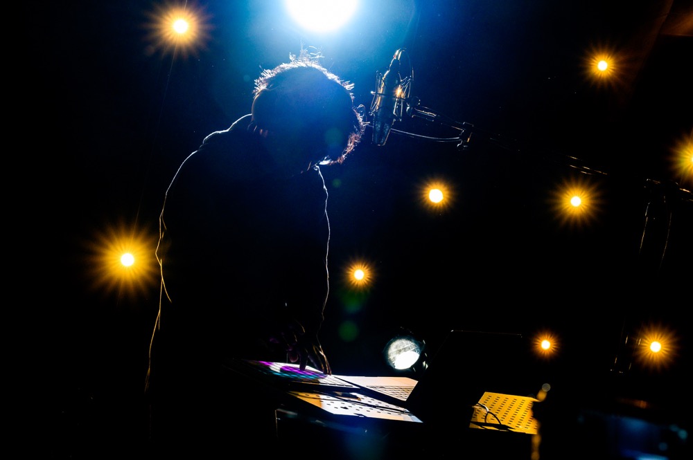 静寂に包まれたステージにmeiyoが登場。第一声「よーしやるぞ」と自らを奮いたたせると、ライブは「KonichiwaTempraSushiNatto」でスタートした。頭から離れないインパクトのあるフレーズを繊細なボイスで届けていく。続けて披露された楽曲は「うろちょろ」だ。間奏、サンプラーでビートを作り上げていく姿もまた見応えがあった。約12年間音楽活動を続けてきたmeiyo。そんな中で4、5年前に作り上げたという「机上の空論」では、ストーリー性溢れるその歌詞をエレキギター一本で表現していく。さっきまでの高揚感溢れるステージとは一転して、しんみりとした空間が流れ始めた瞬間だった。