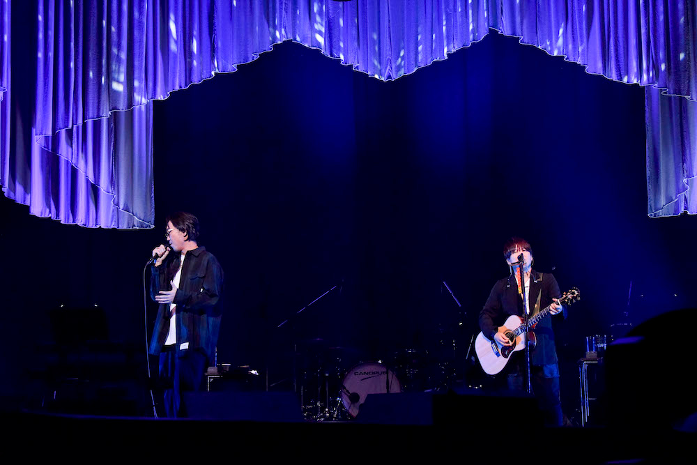 そして、「先日、見上げた夜空に流れる、ふたご座流星群をたまたま見ることができました。肉眼で見ることが難しい流星ですがとてもきれいな夜だったので、みんなにもこの歌を聴いてほしいです」という小渕の紹介とともに、コブクロの代表曲でもある「流星」を披露。大きな拍手が沸き起こったあと、観客は肩を揺らし静かに聴き入った。