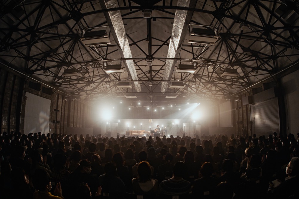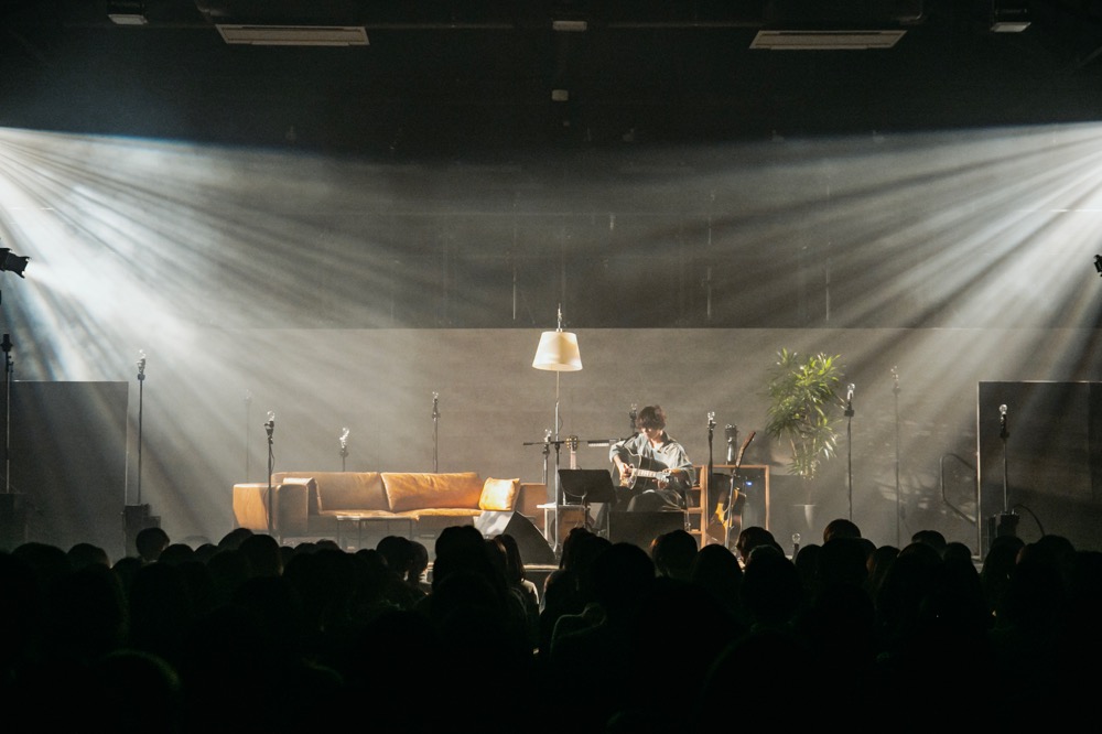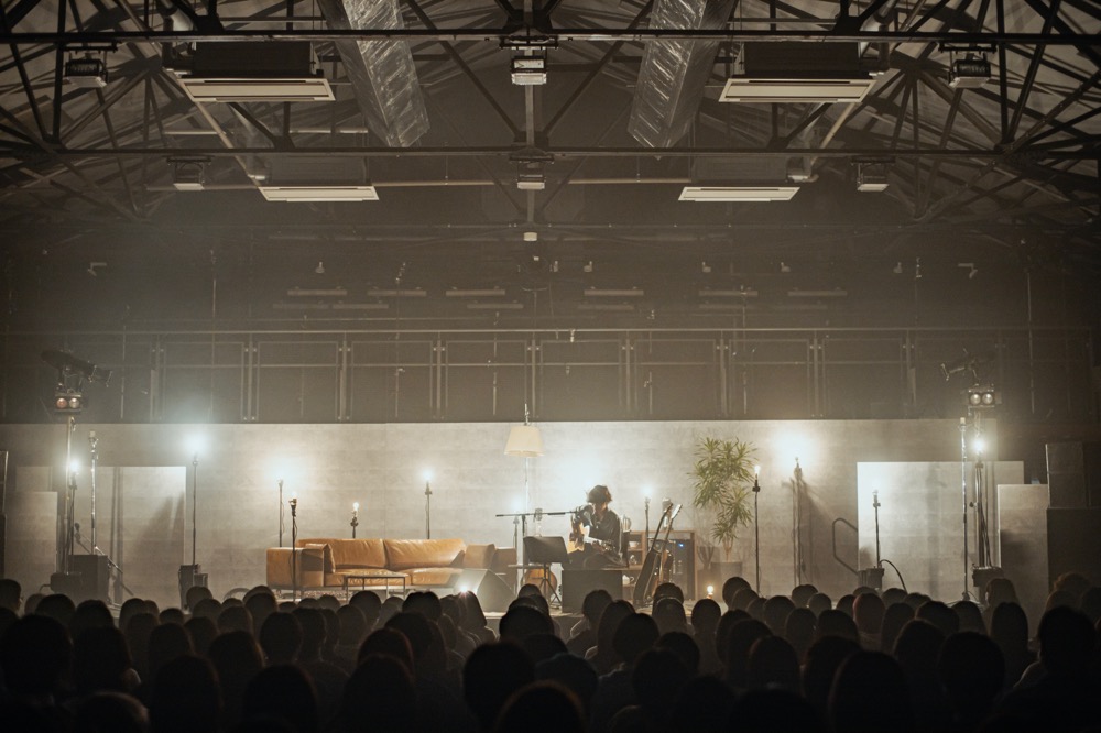 ワンマンでスタジアムクラスの会場を埋め、巨大フェスのメインステージのトリを飾る屈指のライブバンド、[Alexandros]。そのフロントマン&コンポーザーであるボーカル&ギターの川上洋平が、12月24日 と25日の2日間、初のソロアコースティックライブ『Yoohei Kawakami’s #room665 at Warehouse TERRADA supported by Panasonic』を天王洲・寺田倉庫E HALLで行った。