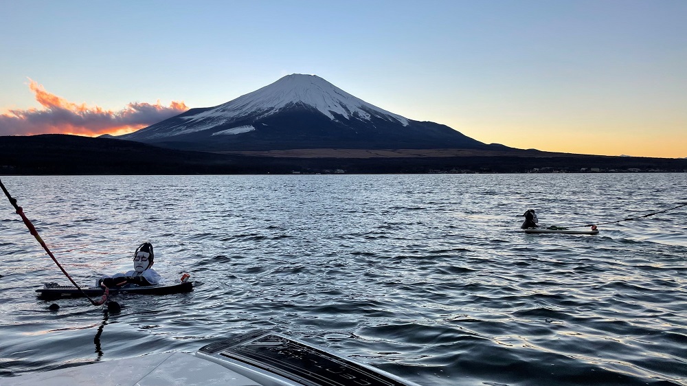 数原龍友、佐野玲於は、ウェイクサーフィンと歌舞伎を融合し「波に乗りながら歌舞伎を披露する1分」に挑戦。舞台は真冬の山中湖。極寒の中震えながら2人は、まさに命がけで1分間の映像に挑む。
