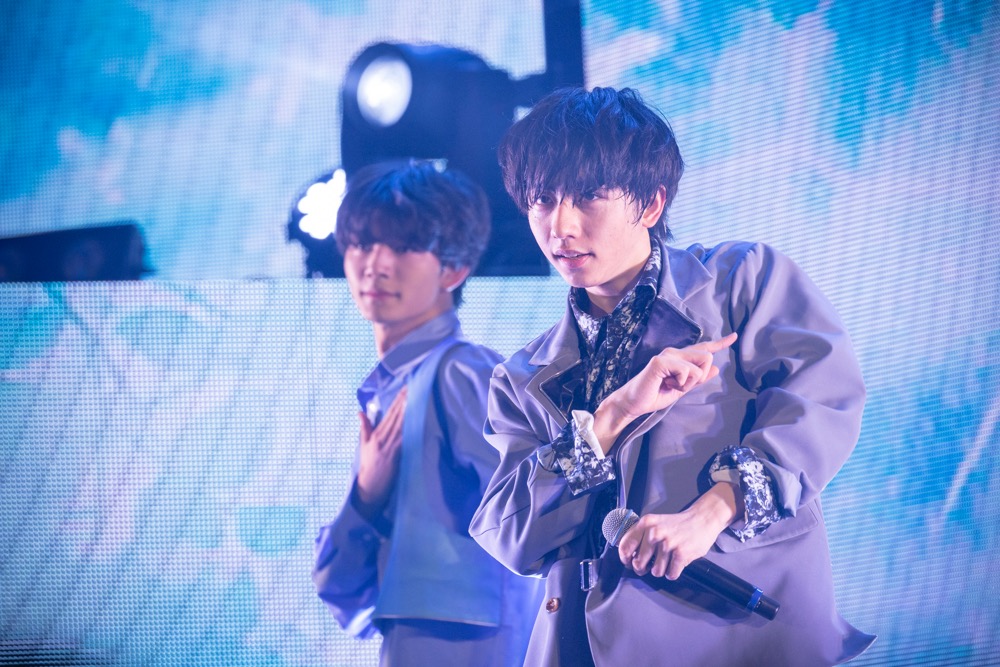 という裏話も。また、「ラベンダー」は1stシングルの収録曲とのことで、それぞれ当時からずいぶん変わったという話になり、最年長である20歳の武藤が「俺だけじゃない? 何も変わってないの!」と自虐に走る場面もあった。しかし、長野がこれまでの道のりを振り返り、「僕たちの原因は貴方です。そして僕らも貴方の、そして、もっと多くの人たちの原因になれるように頑張ります」と決意を述べて、最後に「時速3km」を歌うと、武藤の目に光るものが。初期からイベント等でも繰り返し歌い続け、ファンとの思い出をゆっくりと積み重ねてきたナンバーの温もりに、きっと感極まるものがあったのだろう。二次元と三次元の狭間にある存在であっても、彼らには間違いなく熱い血と豊かな喜怒哀楽が通っている。