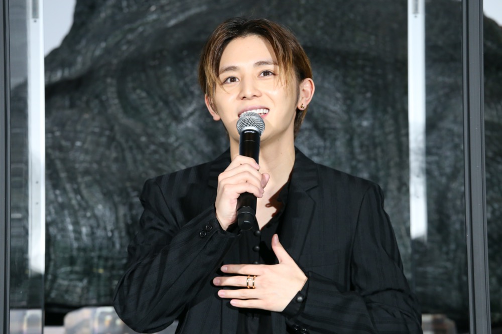劇中では、山田演じる帯刀アラタが怪獣の上に登るシーンがあるが、MCから「Hey! Say! JUMPのメンバーで怪獣の上で歌って踊るのはいかがですか?」と聞かれると、「確かに派手ですけど、足元が不安定なのでちょっと厳しいかな」と笑う山田。