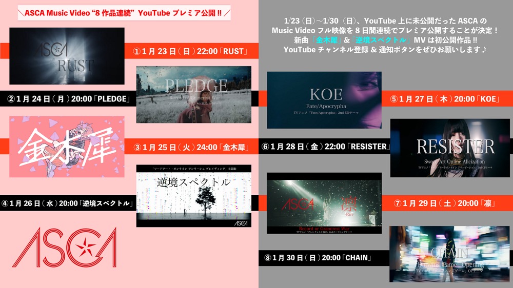 ■ASCA、1月30日21時よりYouTubeリスニングパーティ開催!