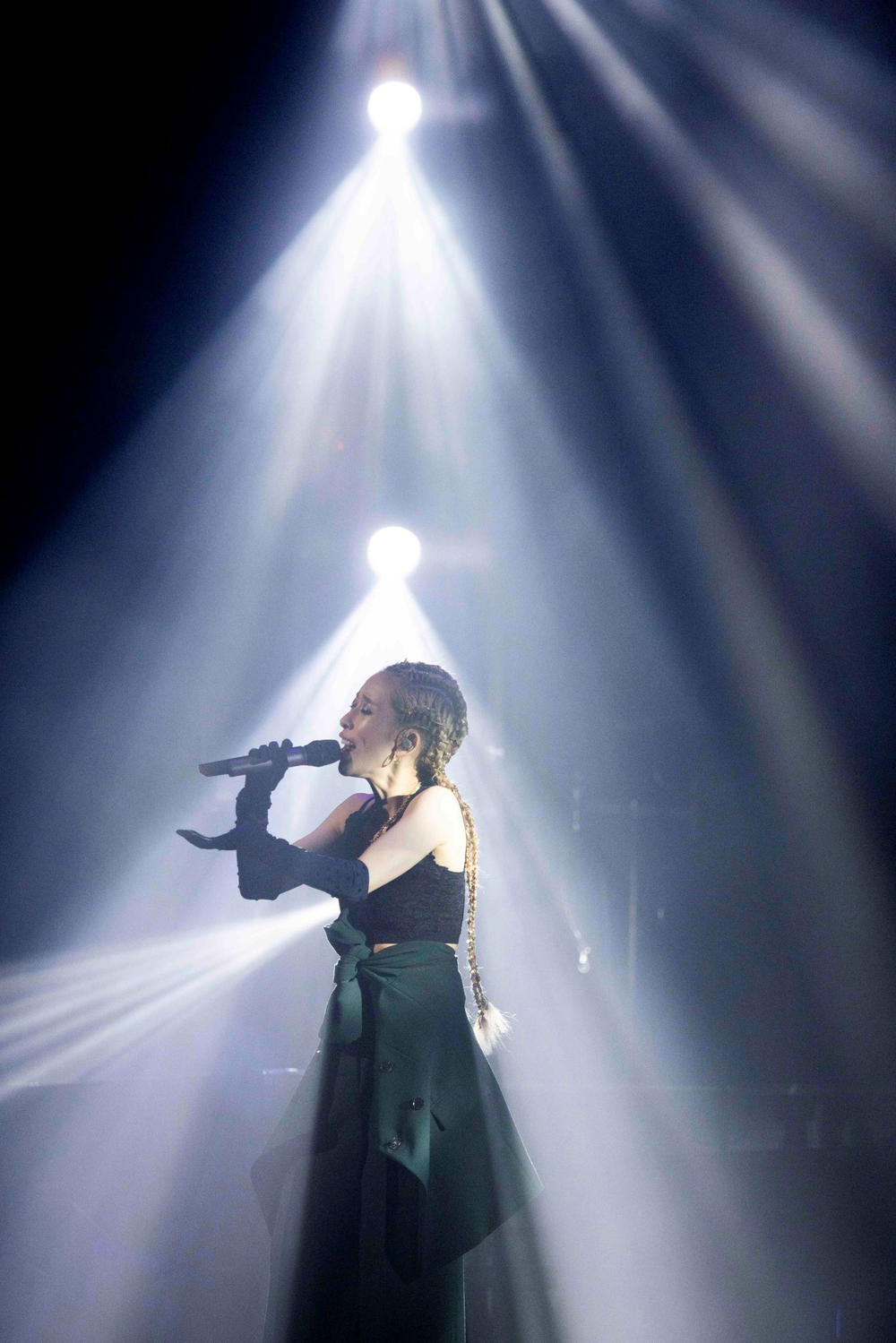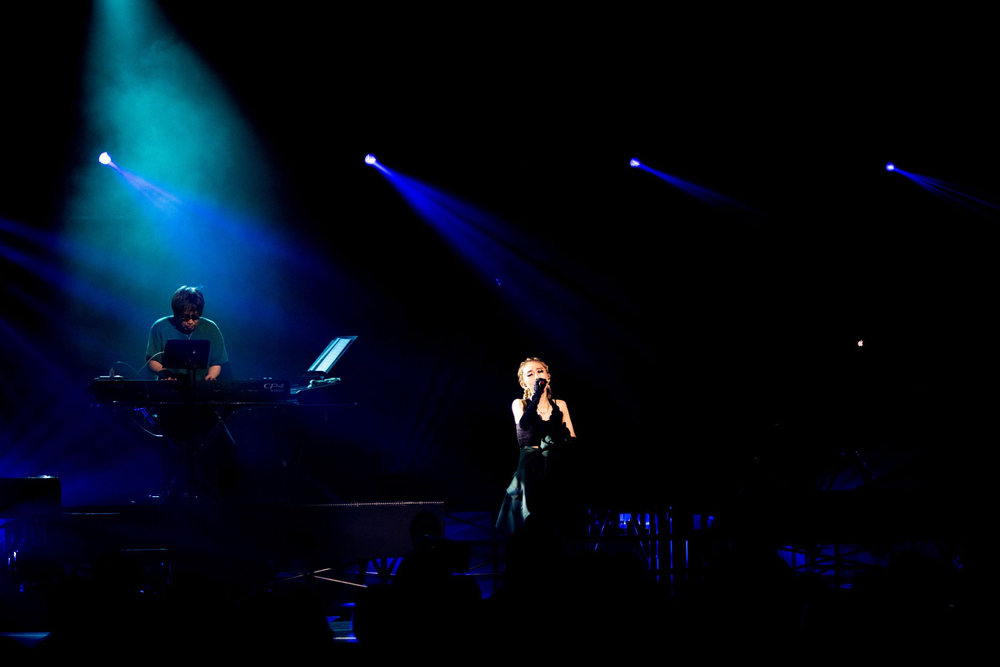 ライブ中盤には自身も思いれの深い一曲「うたかたの日々」やSNSの時代だからこそ女性の綺麗の定義を歌った「綺麗」を披露。本編最後の曲には切ないR&Bナンバー「Lonely Hearts」をダンサーととともに披露。アンコールではゲストにSWAYを迎え、「CRUSH ON YOU」「RUN100」の2曲を披露し会場を熱気に包みこんだ。