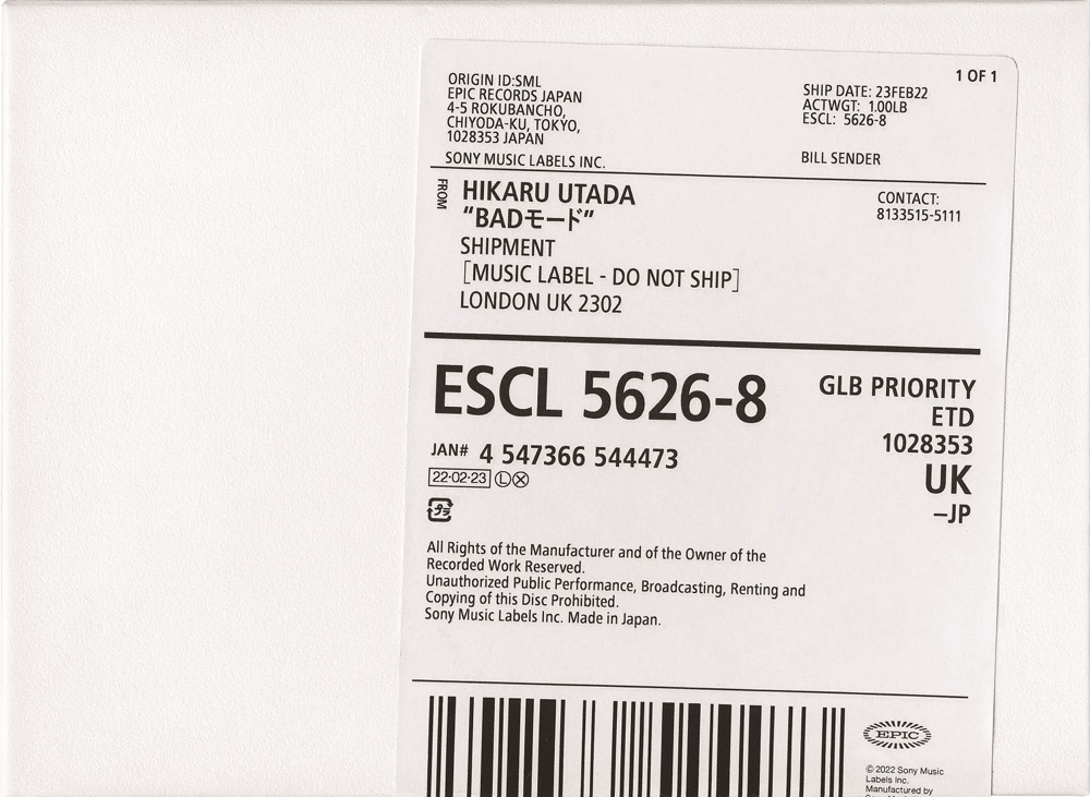 先日先行配信されたニューアルバム『BADモード』が国内配信ランキング1位の他、世界21ヵ国・地域で上位ランクインするなど大ヒット中の宇多田ヒカル。2月23日には初回生産限定盤を含むCDアルバムの発売を控えている。