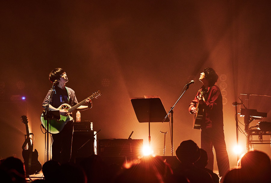 鳴り止まない手拍子に導かれ、再びステージに登場した崎山。改めて感謝の言葉を口にしたあと、シークレットゲストの石崎ひゅーいを呼び込むと、フロアからは大きな拍手が巻き起こった。まずはふたりで共作した「告白」。思春期の始まりのピュアな心情を描いた歌を崎山、石崎が声を合わせて描き出す、超レアなシーンが実現した。さらに石崎のオリジナル曲「ひまわり畑の夜」も。小学生の頃から石崎のファンだったという崎山にとって、これ以上ないプレゼントだったと言っていいだろう。