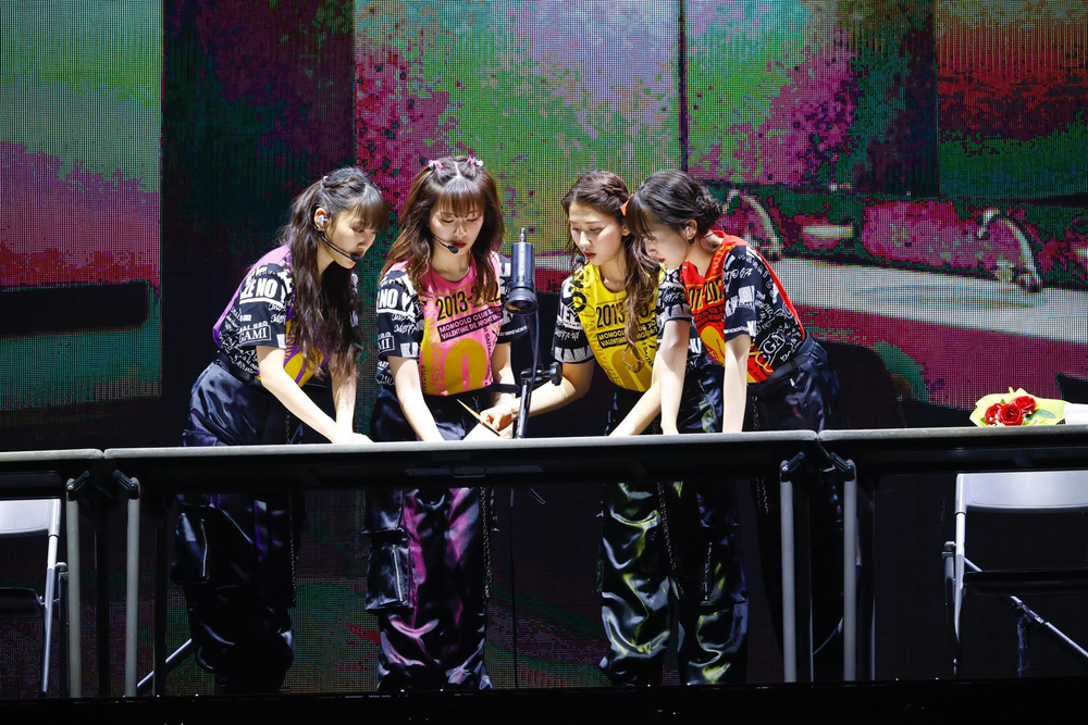 アンコールでは、オープニングのショートドラマの続きが演じられた。4人のもとに、モノノフから届いた花の差し入れに意味不明なことが書かれているメッセージカードも添えられていたのだが、言葉を入れ替えて全て合わせてみると「10年後もいっしょ」という言葉が浮かび上がり…。