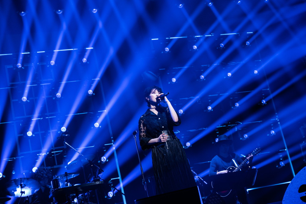 その後、真っ赤なシースルートップスにタイトなパンツスタイルから上下黒のロングスカートにスタイルチェンジした家入は「Silly」「もし君を許せたら」「未完成」など計5曲を情感たっぷりに歌い上げた。