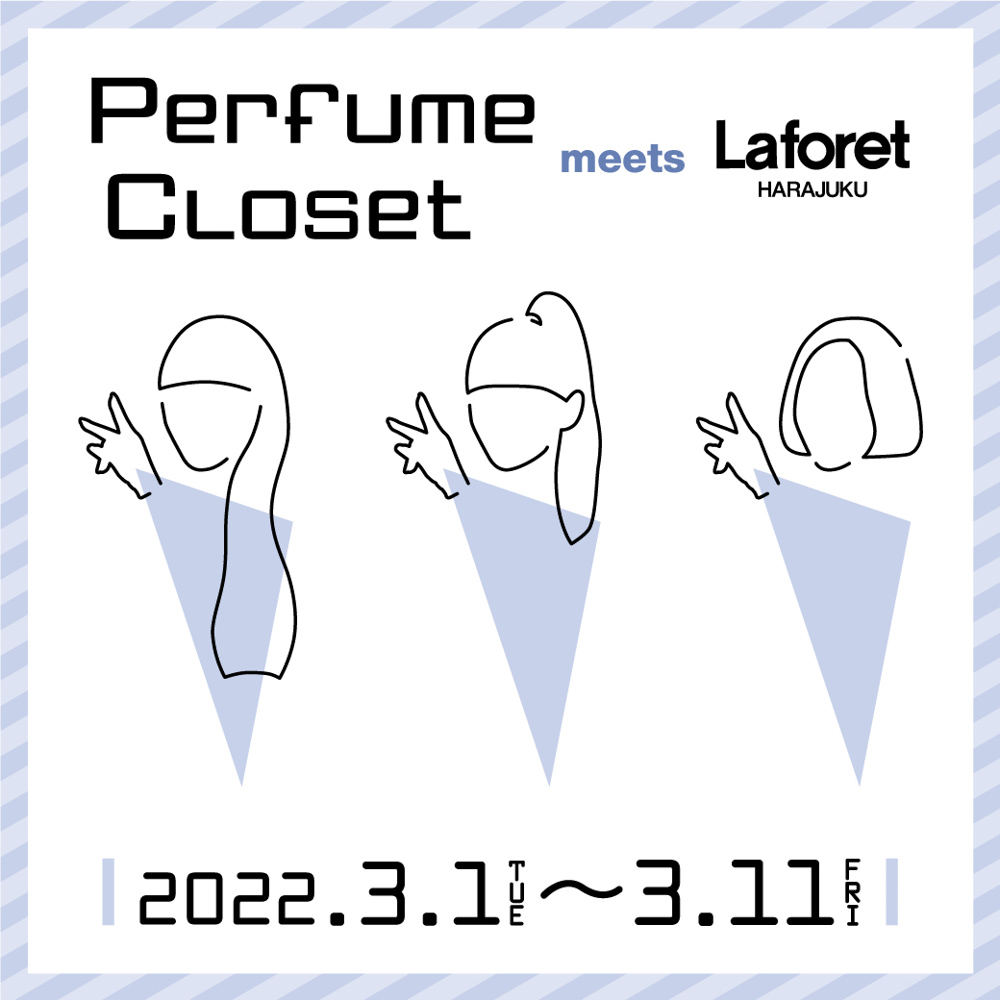 Perfumeのファッションプロジェクト『Perfume Closet』の第6弾となる新作アパレルラインのポップアップショップが、3月1日から3月7日まで、原宿ラフォーレの1階エントランスと2階CONTAINERにてオープン。