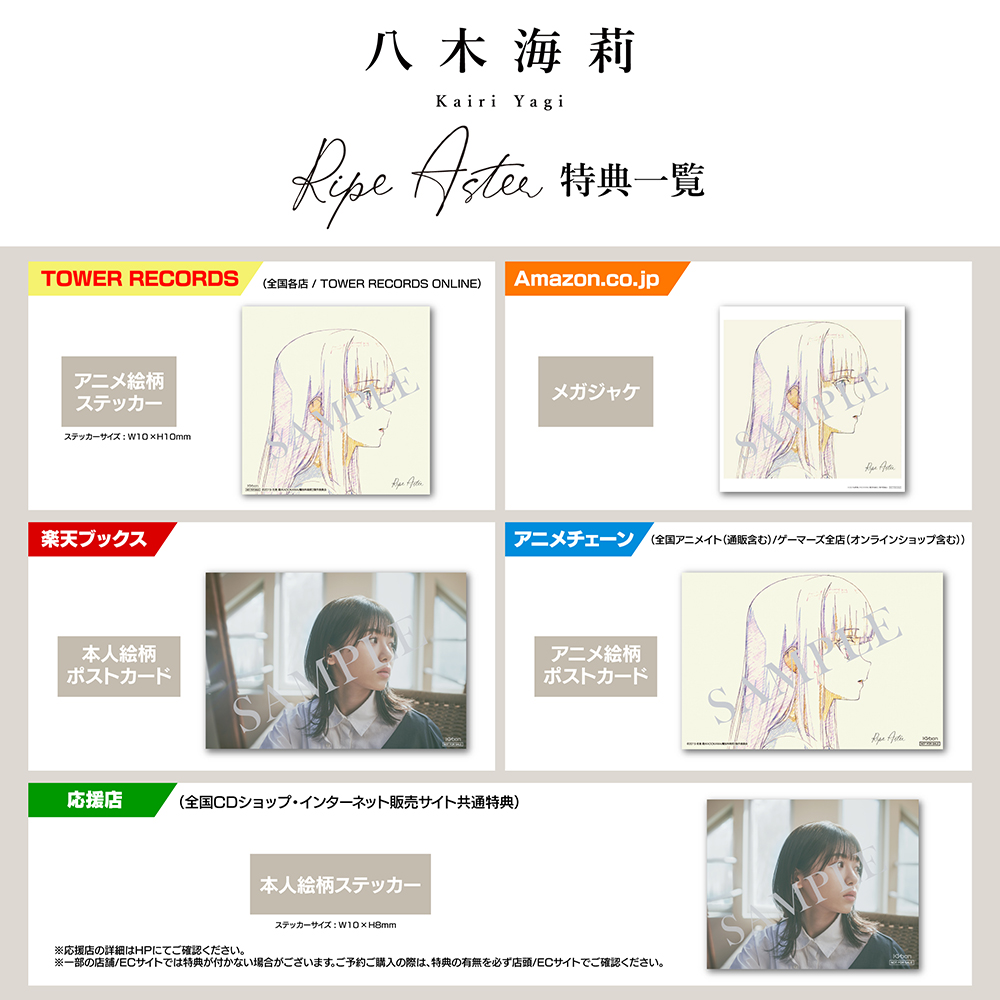 また、シングル「Ripe Aster」と、4月27日に発売される八木海莉の1st EP(タイトル未定)のW購入者特典のキャンペーンも決定。
