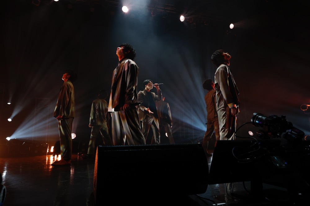 続けて、Spotifyバイラルチャートインし話題となった「豪雨」を披露。“禁断の恋”をテーマに描かれている楽曲となっているが、平均年齢18歳の彼らがパフォーマンスで表現するとひとつの作品となり、なんとも息を呑むように見入ってしまう。