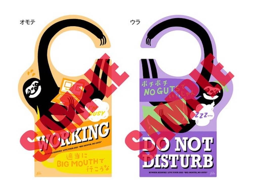 ツアーロゴのキービジュアルとして使われていたナマケモノのキャラクターがあしらわれ、ドアノブにナマケモノがぶらさがるポップなデザインとなっている。