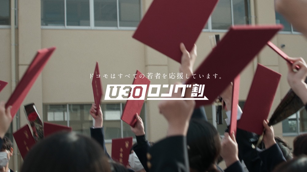 NTTドコモが、「U30 ロング割」のプロモーションの一環として、卒業式の答辞のシーンになぞらえ、高校生たちの未来への決意を描いたスペシャルムービー『卒業生100万人の答辞』篇が公開された。