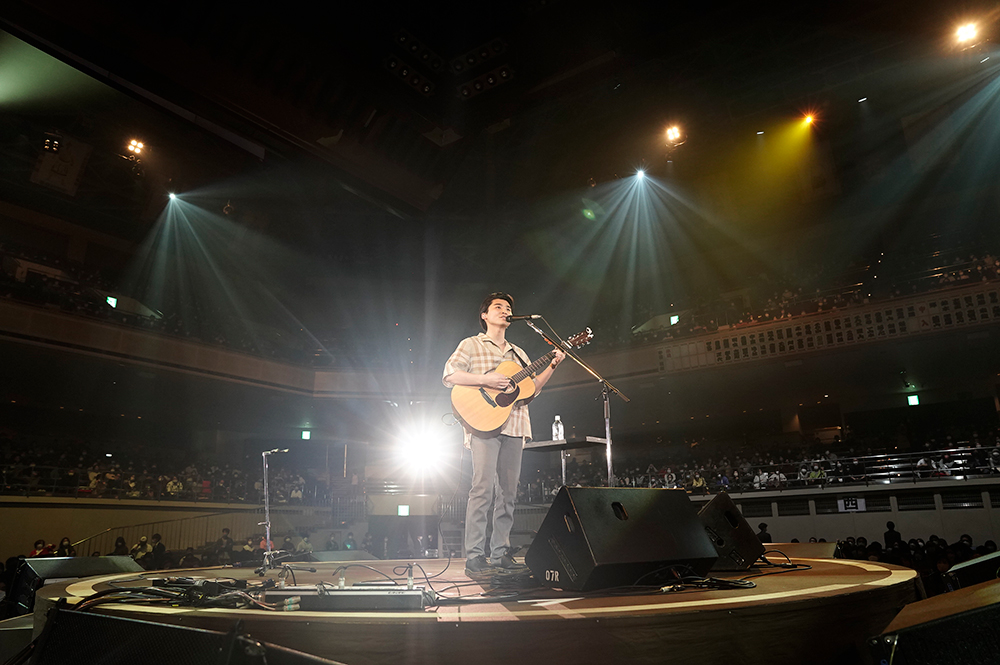 2013年に始まり、今年で7回目の開催となる『ギタージャンボリー』は、土俵に見立てたセンターステージをぐるりと360度かこむ臨場感のある客席が魅力のイベント。それに対峙するアーティストたちの本気の弾き語りが組み合わさり、両国国技館で開催するギタージャンボリーならではのライブが生まれる。今回は3時間のディレイでオンライン配信も実施し、両国国技館とオンラインの両方でギターの音色を届けた。