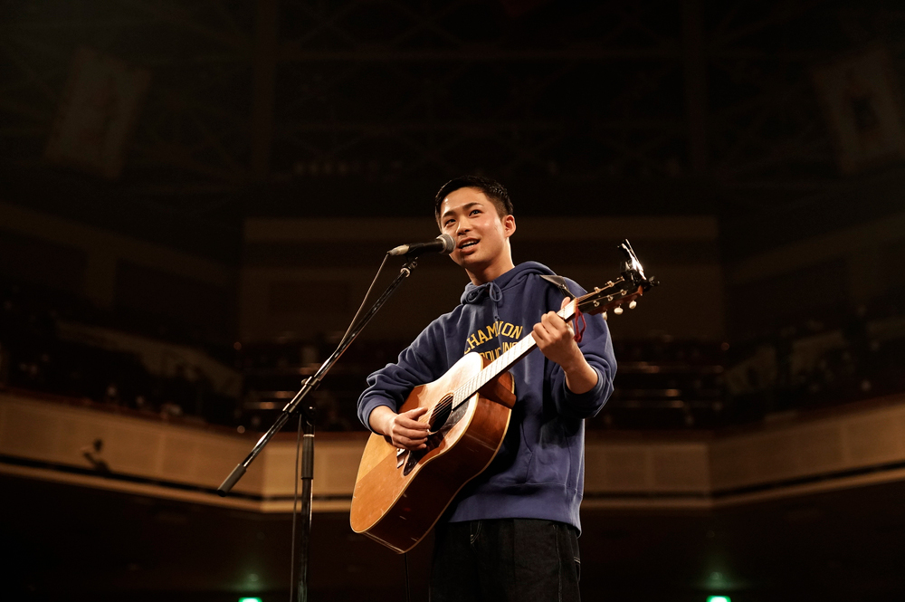500組を超える応募者のなかから、厳正なる審査の結果、7組のアーティストが最終審査へと通過。3月4日行われた最終審査で、神戸のあらたとCLOWの2組が審査を通過し、ギタージャンボリーの各日それぞれ幕間にステージで弾き語りを披露した。