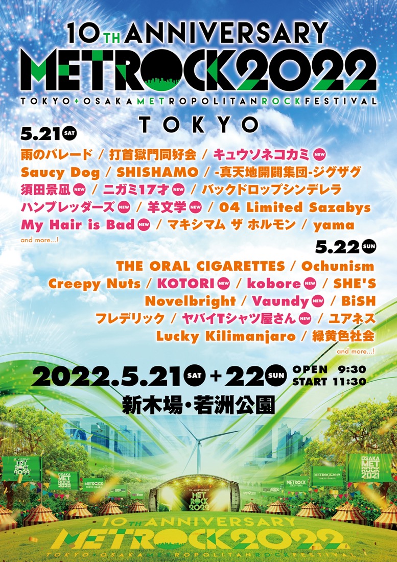 5月14日・15日に大阪・METROCK大阪特設会場、5月21日・22日に東京・新木場若洲公園で開催される『METROCK2022』の第3弾出演アーティストが発表された。