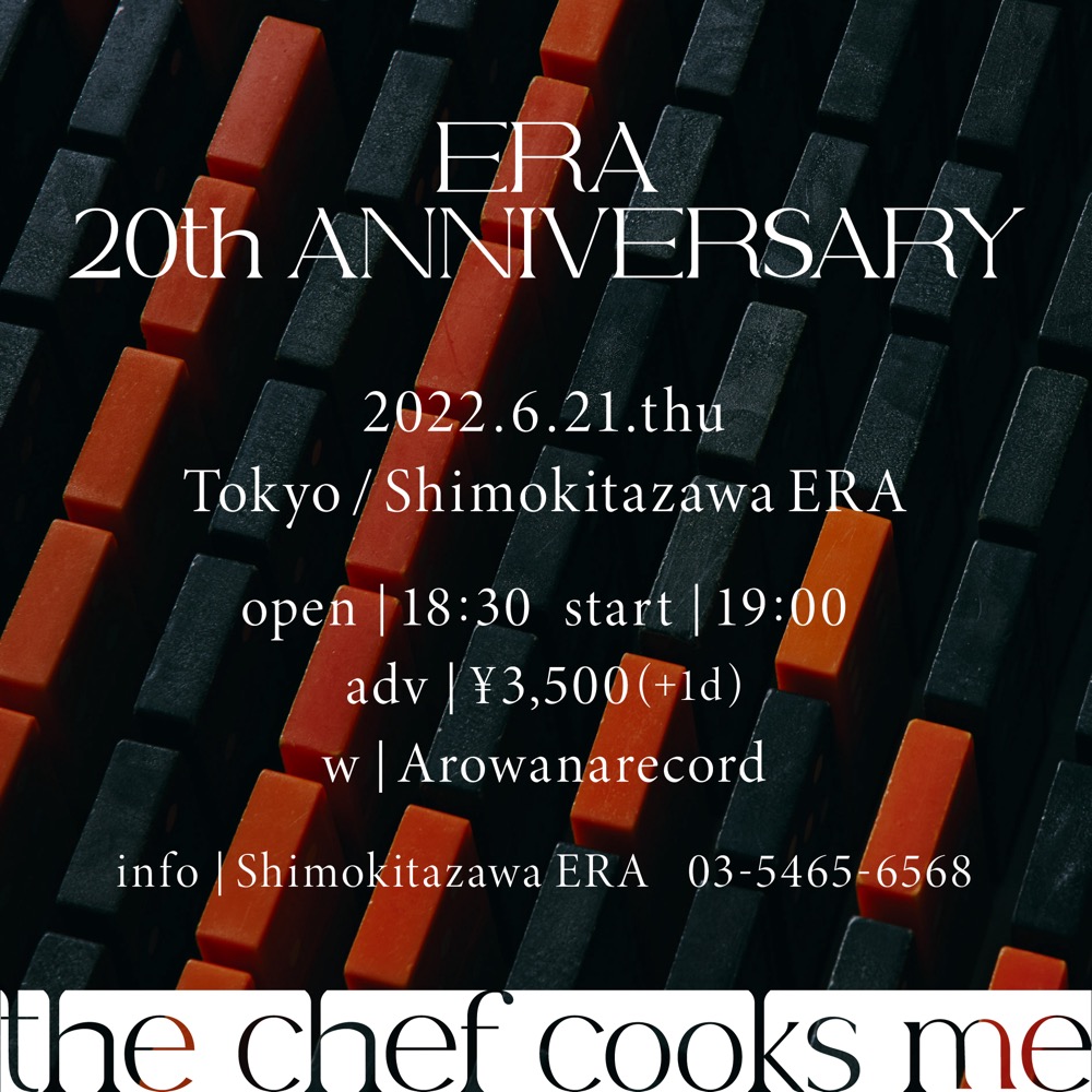 6月21日の東京公演は、2003年にthe chef cooks meとして初ライブを行い、過去に下村亮介がスタッフとして働いていたゆかりの深い下北沢ERAの20周年イベントへの出演。こちらも都内を中心に活動中の若手5人組バンド、アロワナレコードとの2マンライブとなる。
