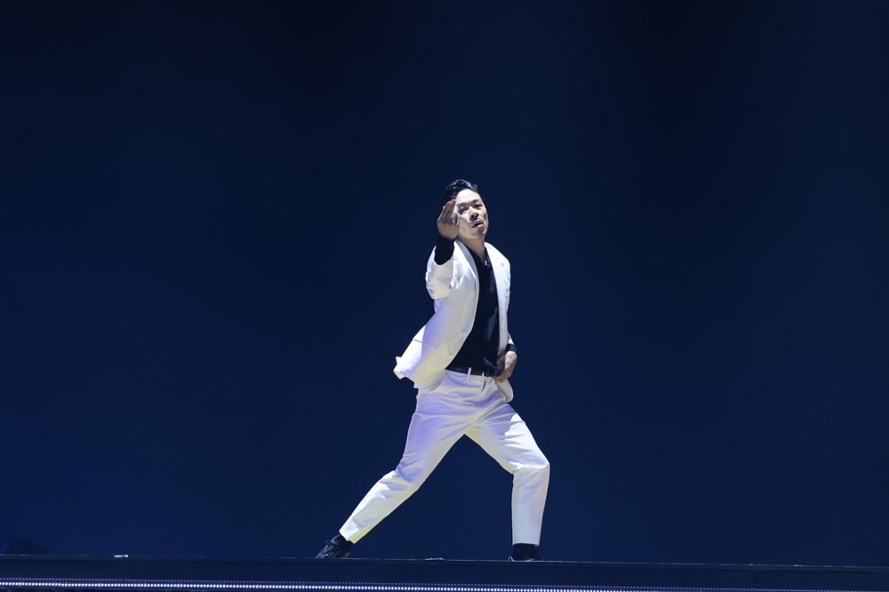JP THE WAVYが歌った「GOOD VIBES ONLY」の中盤では、EXILE SHOKICHIが登場。続いてSHOKICHIと片寄、数原によって「Angel」が披露され、「Fly Away」「GOING ON」とEXILEの楽曲をともにパフォーマンスした。そして、しっとりと「LA・LA・LA・LOVE SONG」(久保田利伸 with NAOMI CAMPBELL)、「THE ONE」(EXILE SHOKICHI)と続き、クライマックスへ。3人のボーカルの伸びやかな声が幻想的に溶けていった。