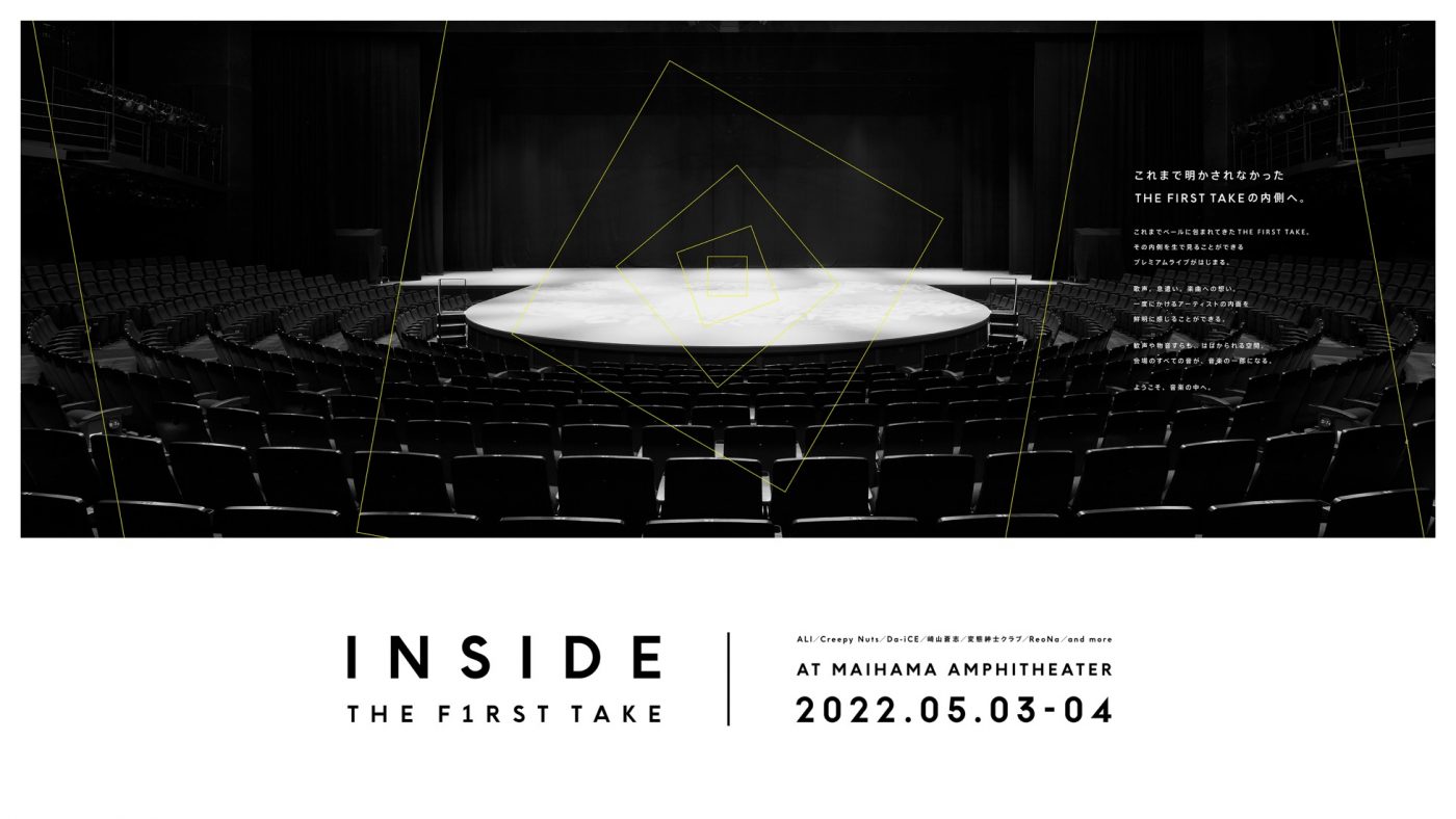 今回発表されたのは、『THE FIRST TAKE』初の有観客ライブ『INSIDE THE FIRST TAKE』。これまで明かされていなかった『THE FIRST TAKE』の撮影の内側と、会場で上映されるドキュメンタリー映像から、「アーティスト」の内面に迫ることができる内容となっている。