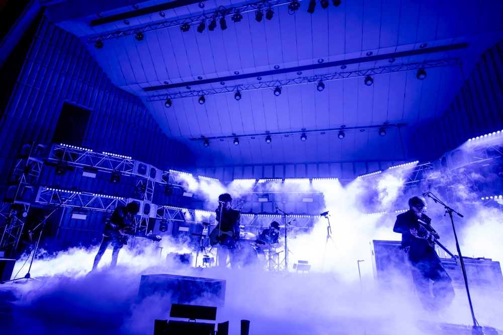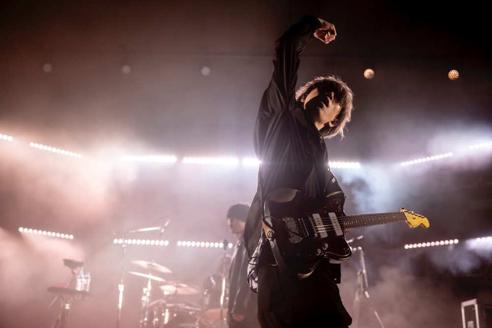 オープニングから観客の拍手喝采に包まれながら登場し、いきなりアルバム『事象の地平線』収録曲を中心にパフォーマンスを繰り広げ、場内をヒートアップさせる。冒頭の柳田周作(Vo)のMCでは、バンドを結成してから7年間は苦悩が大半を占めていたこと、そして7年目にしてようやくフルアルバムをリリースし、今野音のステージに立っていることの喜びを語り、今もバンドを継続できているのは「応援してくれている皆さんの存在だ」という感謝の気持ちを、心を込めて伝えた。