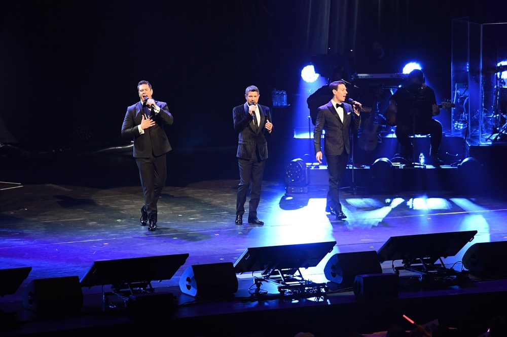 札幌公演では、華やかでスタイリッシュな黒のスーツで登場した3人のメンバーが、オーケストラをバックにドラマティックでゴージャスな歌声と絶妙のハーモニーを披露。その後、ゲスト・シンガーのスティーヴン・ラブリエが参加、新しいハーモニーを生み出した。