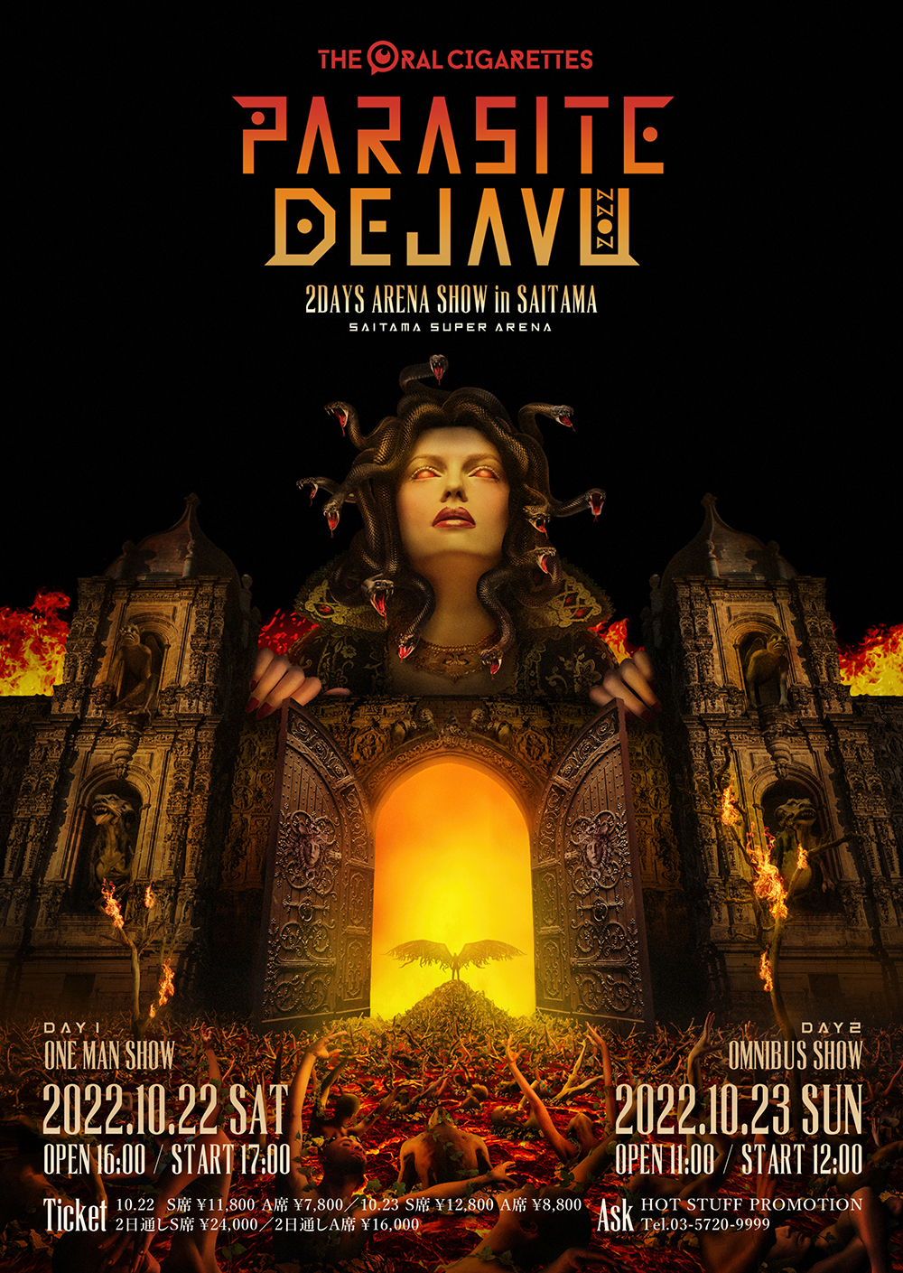 THE ORAL CIGARETTESが10月22・23日に『THE ORAL CIGARETTES 「PARASITE DEJAVU 2022 ~2DAYS ARENA SHOW in SAITAMA~』を開催する。