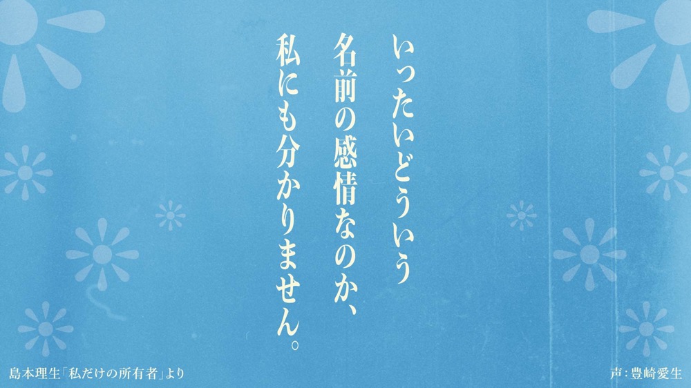 このたび、『私だけの所有者』に加え、辻村深月『ユーレイ』、宮部みゆき『色違いのトランプ』、森絵都『ヒカリノタネ』という『はじめての』収録4作の名シーンを、99人の声優とボーカル・ikuraの計100人が朗読した全100パターンのPVが公開されることが決定した。