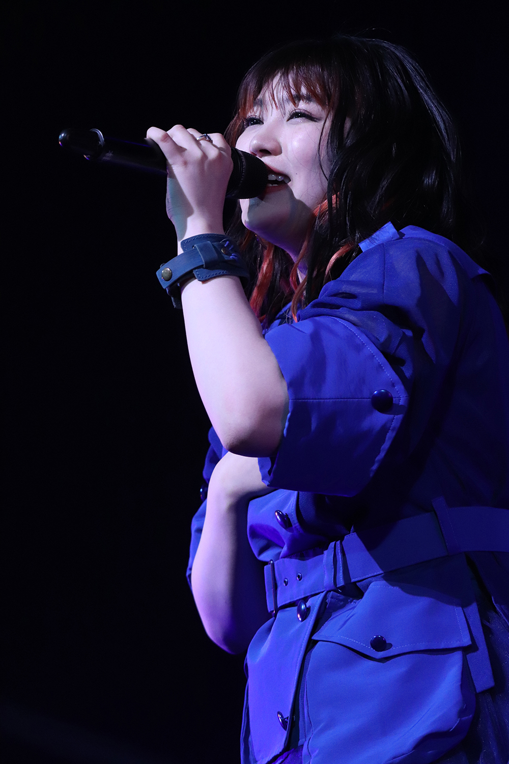 続いてブルーの衣装で登場し、「あたしきっと無限ルーパー」でパワフルにライブがスタート。得意の激しいダンスパフォーマンスを見せて、昨年の生誕祭で初披露されたオリジナル曲「Take your Original」を雰囲気たっぷりに歌う。続くDance Interでは得意のダンスをビシっと決めて、「PLAYBACK」「ちがうの」ではコーラスの小湊美和とのコンビネーションも絶妙なパフォーマンスを見せた。