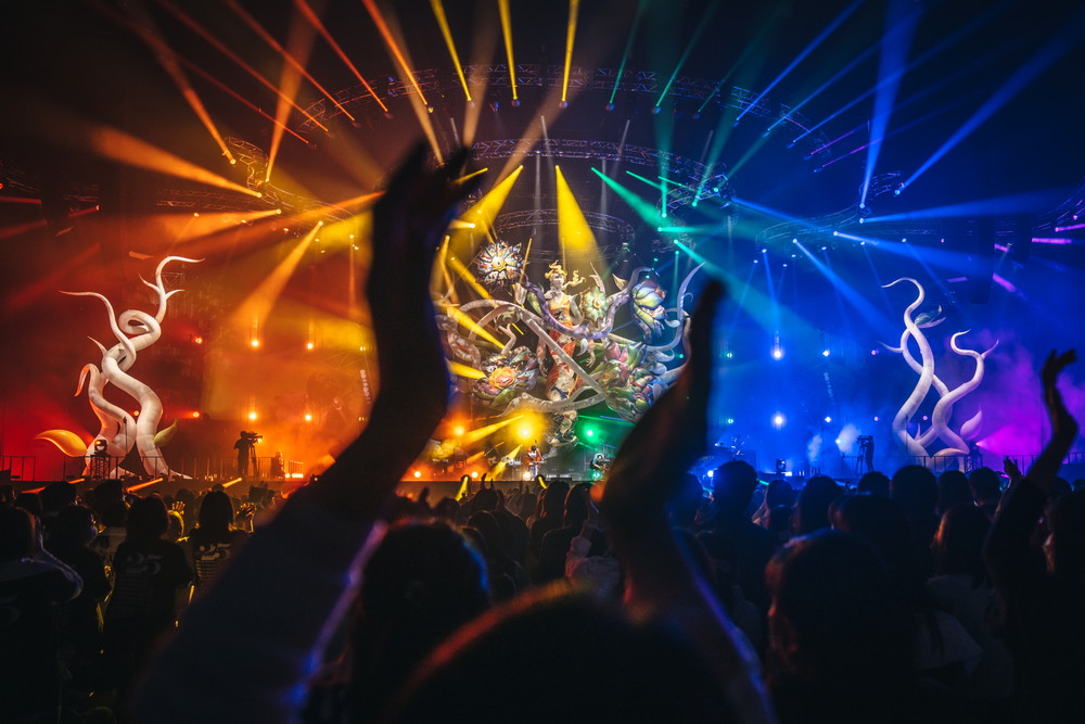 3⽉26⽇、ゆずの25周年記念アリーナツアーがさいたまスーパーアリーナで開幕。現代美術家・松⼭智⼀はメインステージ中央にそびえる全⾼12mの巨⼤な舞台彫刻「Mother Other」(マザー・アザー)を制作し、ツアー初⽇にお披露⽬となった。作家にとってかつてない規模での⽴体表現となった「Mother Other」は、松⼭独特の装飾柄や流美な曲線が表現され、⼥神の優しい眼差しがステージを⾒守る。