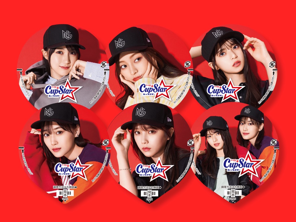 CAPSTARキャンペーンに連動して、乃木坂46のメンバーが商品上蓋にデザインされた限定パッケージのカップスターを発売。梅澤美波、賀喜遥香、齋藤飛鳥、山下美月、与田祐希が、“CAPSTAR”をかぶったスタイリッシュなデザイン全11種類で登場、各メンバーのソロカットに加え、齋藤飛鳥、山下美月のペアデザインも用意して売り場を華やかに盛り上げる。(各ソロカット2タイプ、ペアデザイン1タイプ)