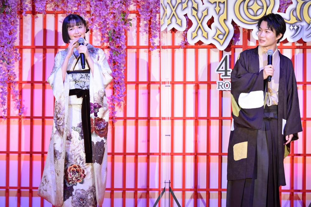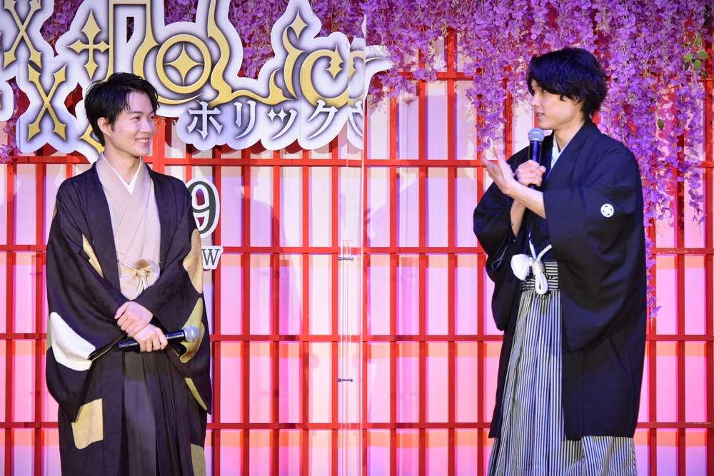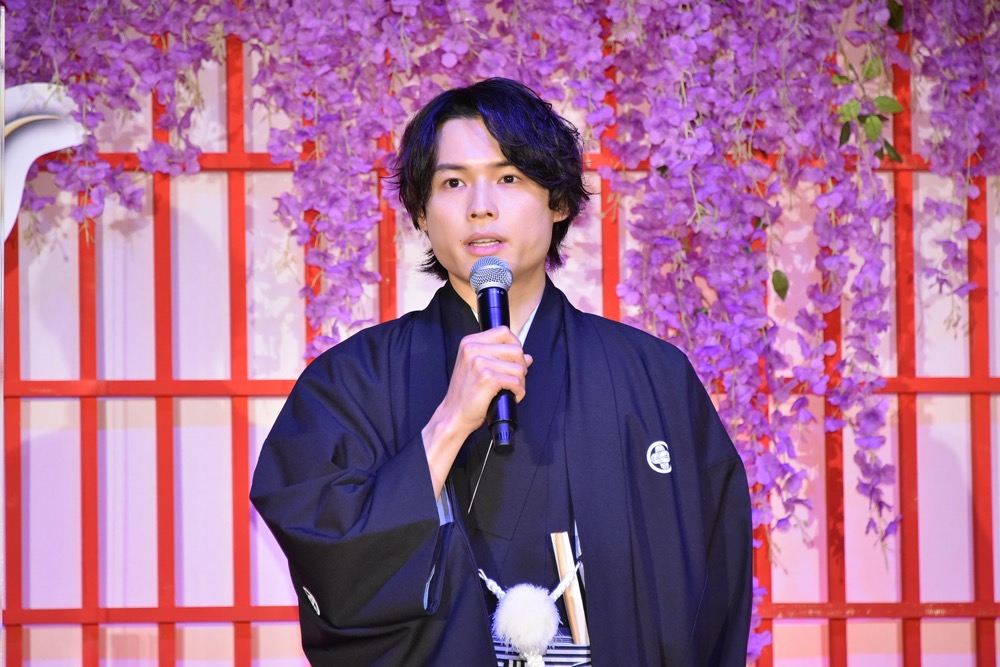CLAMP(クランプ)の伝説的大ヒットコミックを、『ヘルタースケルター』『Diner ダイナー』の蜷川実花監督が実写映画化した『ホリック xxxHOLiC』(4月29日公開)。本作の大ヒット祈願イベントが、4月14日、東京・神田明神で行われ、主演の神木隆之介、共演の松村北斗(SixTONES)、玉城ティナが和服姿で参加した。
