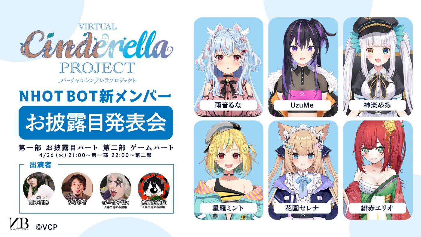 バーチャルシンデレラプロジェクトから誕生したバーチャルアイドルグループ、NHOT BOT(ノットボット)の新メンバーお披露目発表会が、4月26日21時から公式YouTubeチャンネルおよび公式bilibiliチャンネルにて配信される。