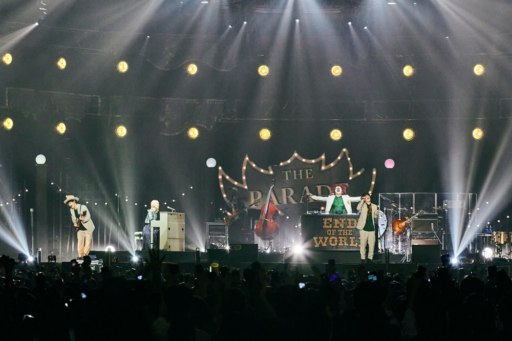 ラストは、SEKAI NO OWARI。大ヒット曲「スターライトパレード」で幕を開け、デビューから現在までを綴っていく。中盤には4月28日に配信リリースされる新曲「Habit」を初披露。ラストは「炎と森のカーニバル」で締める。アンコールでは、この日に出演した3組のミュージシャンも加わり客席をバックに全員で記念撮影。そして最後は「Dragon Night」を演奏し4時間30分に及んだ『THE PARADE』は終了した。