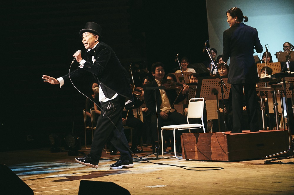 ハイライトは、ショウ中盤に木梨が「スーパー・スペシャル・ゲスト」として紹介した加藤茶の降臨だ。ゲストが加藤茶とわかると会場のボルテージは一気にピークに。加藤と木梨との食事会の席で『木梨憲武 交響楽団』の話が出た流れで、シークレットでの出演が叶ったと今回の経緯を明かした他、往年のギャグもクラシック・アレンジとともに飛び出すなど、この公演でしか成し得ない最高のスペシャル・コーナーとなった。
