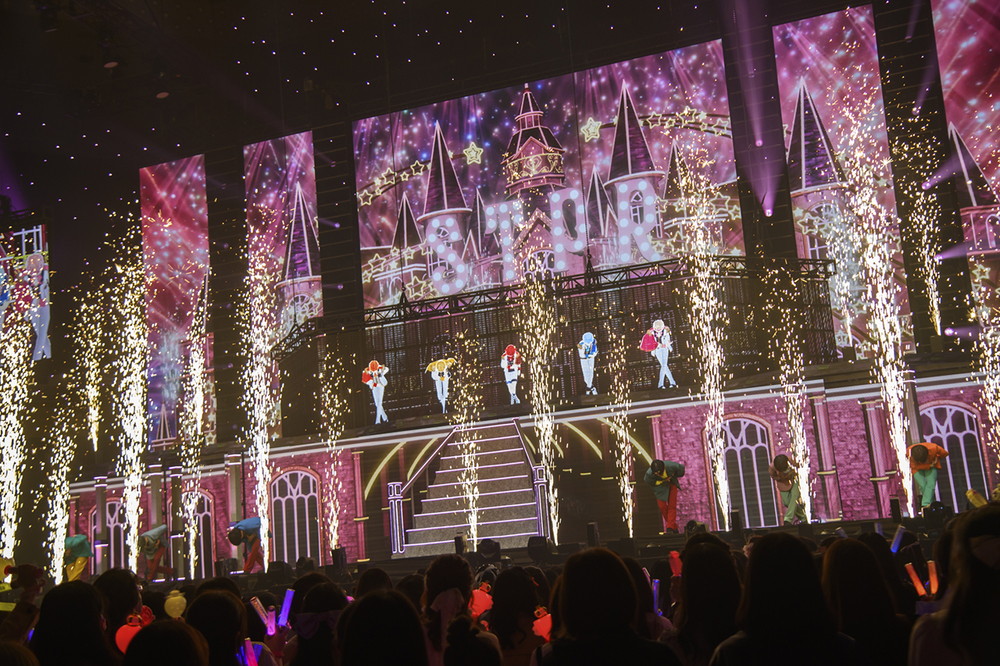 以降は楽曲がノンストップでミックスされるDJパーティー形式のライブへ。公演テーマの「Rock Party」に合わせて、「僕らだけのシャングリラ」「Move On!」「苺色夏花火」「ギンギラ銀河」が繋がり、“ロックでポップなパーティー”が会場に広がっていく。その後も、少しMCを挟んで再びノンストップで「大宇宙ランデブー」「ホワイトプロミス」「ストロベリー・レボリューション」「ストロベリー・プラネット」を披露。「ストロベリー・レボリューション」では歌詞の「出発進行・ファイヤー!」に合わせて火柱が吹き上がった。