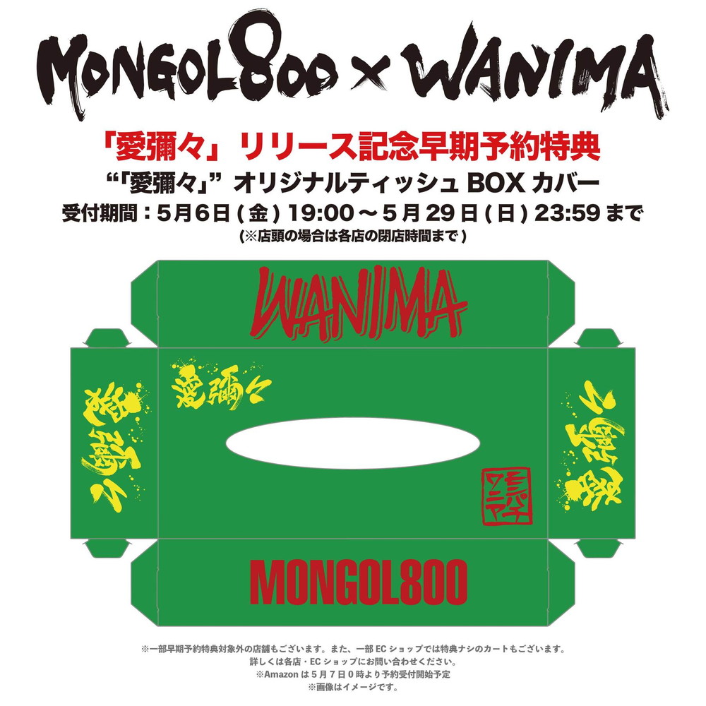 スプリットEP『愛彌々』には、MONGOL800とWANIMAが共に制作した表題曲「愛彌々」の他、MONGOL800がWANIMAに提供した楽曲「LAST PARADISE」、WANIMAがMONGOL800に提供した「てぃんがーら」を収録。両バンドの楽曲「rainbow」「1106」をそれぞれがカバーするなど、今回のスプリット作品がなければ実現しなかったであろう内容となっている。