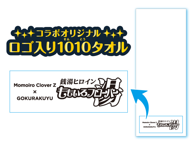 コラボキャンペーンは、極楽湯、RAKU SPAグループ12店舗で5月13日から5月19日の期間で開催。コラボ風呂「ももフロ 祝典の湯」やコラボタオル「ロゴ入り1010タオル」の販売といった銭湯ならではのコラボ内容となっている。
