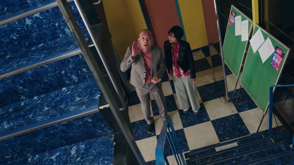 今日もいけすかない先輩講師・藤沢(みなみかわ)に、運動不足なのを『キン肉マン』に出てくる超人になぞらえてからかわれてしまう新任講師の流果(里々佳)。そんなときに、屋上から音楽がうっすらと流れてくる。注意を押し付けられた流果が屋上を覗くと、そこにはスマホの動画に合わせてヨガに励む謎の講師・渋谷(谷中敦)の姿が。とはいえ、ゴロ寝したりするだけの、それはヨガと言っていいのかイマイチ不明な代物…流果はまたもや呆れてしまう。