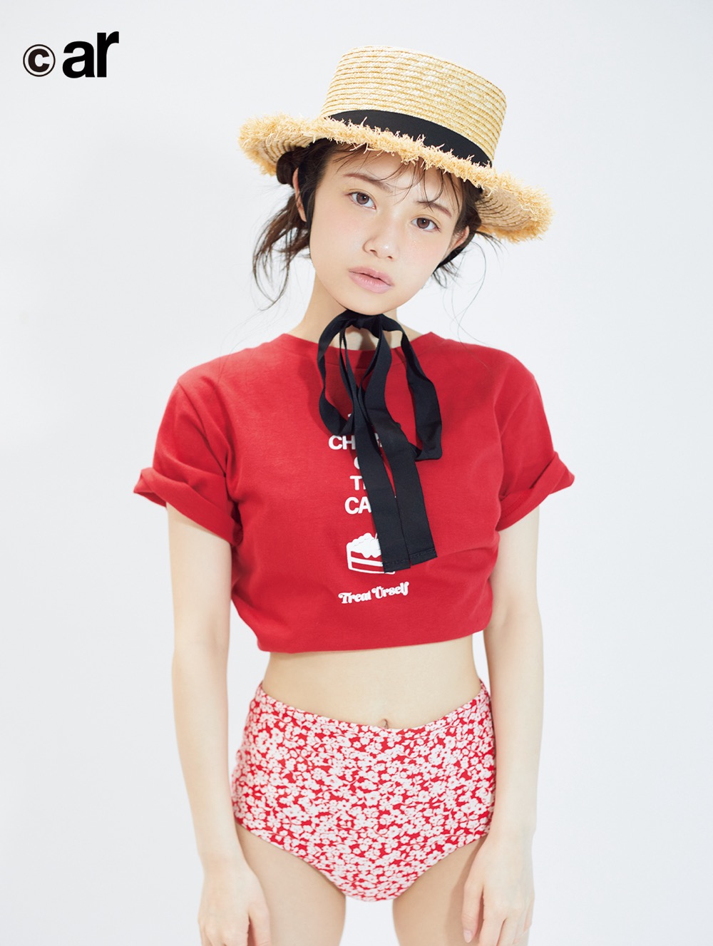 人気コスプレイヤーのあかせあかりが女の子のためのグラビアに挑戦し、ar本誌初登場。夏まっしぐらな麦わらX水着姿や、下着Xシャツの抜け感コンビネーションなど全4体を着こなした。