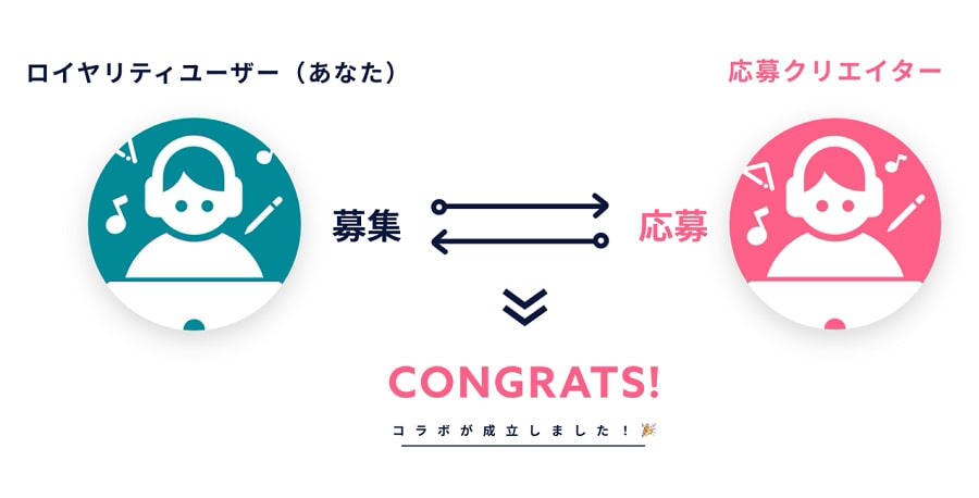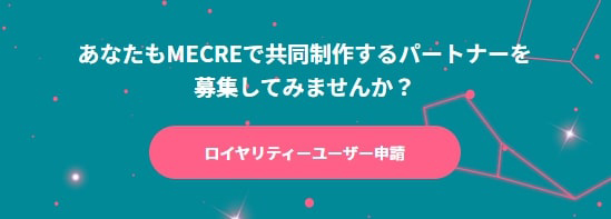 ロイヤリティユーザーとは、「MECRE」でパートナー募集する権利を持つユーザーのこと。これまではMECRE事務局からの招待や、The VOCALOID Collectionのランキング上位入賞者へ付与されるものだったが、今後は意欲のあるクリエイターを広く募る形となっていく。