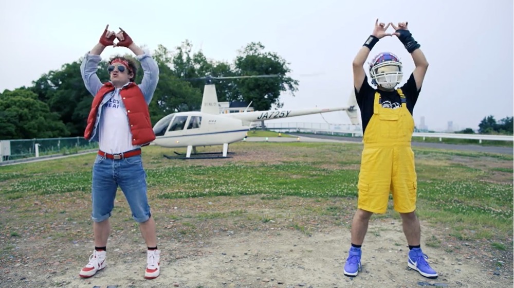 米カリフォルニア州サンディエゴに止められた空母「ミッドウェー」での『トップガン マーヴェリック』ワールドプレミア・レッドカーペットにヘリコプターで華々しく登場したトム・クルーズに憧れたザ・リーサルウェポンズが、神奈川・横浜西ヘリポートに大きさ50cm×50cmの手作りレッドカーペットを敷いたステージにヘリコプターで着陸し、パフォーマンス。
