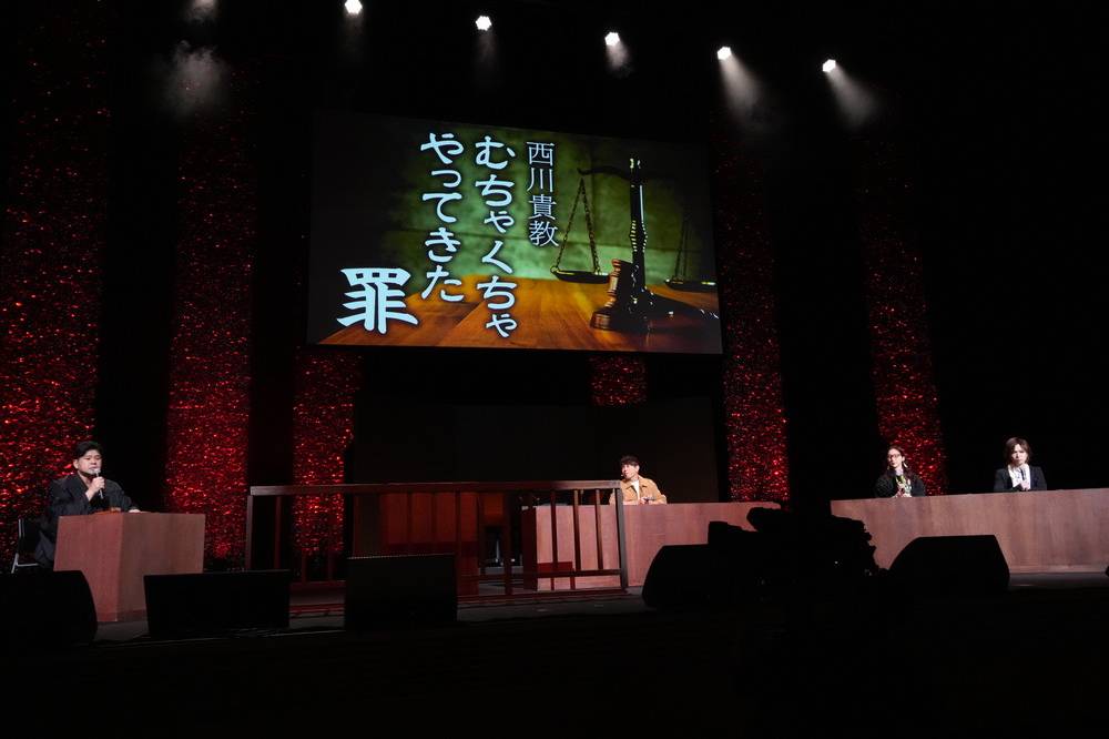 「西川貴教 むちゃくちゃやってきた罪」という罪状がスクリーンに映し出されるも、西川は「まったく身に覚えがない」と言う。そんな西川に罪を訴えるのは、番組の元ディレクターやニッポン放送の吉田尚記アナウンサー、そして鬼龍院。
