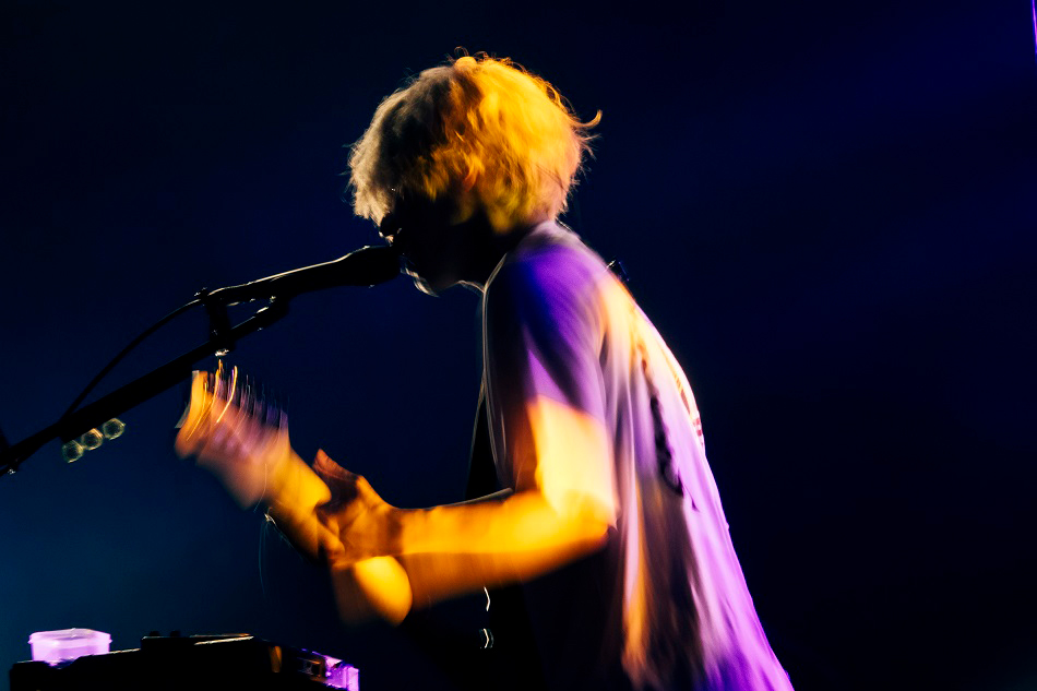 定刻17時。「白夜」のイントロが鳴る。“消えないでいて”と切なる声が胸に刺さりつつ、リズムが観客の体をゆっくりと動かしていく。「アク」「Caffeine」「アイデンティティ」と続き、観客は分厚い音の鳴りにステージへと手を伸ばす。