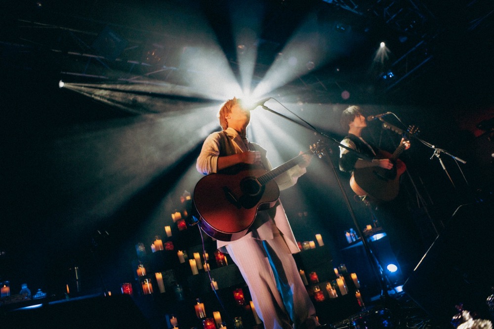開演前の場内には、J-POPの歴史に刻まれてきた数々のラブソングが流れていたが、定刻を5分ほど過ぎた頃に客電が暗転。200本以上のキャンドルが並べられたロマンチックなステージに登場したふたりは、向き合って気を合わせ、7年前、13歳の時にリリースした1stシングル「いくじなし」で甘酸っぱい恋の物語をスタート。