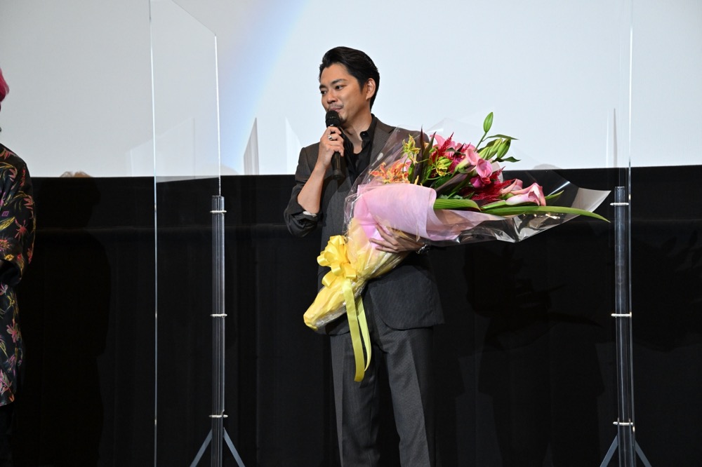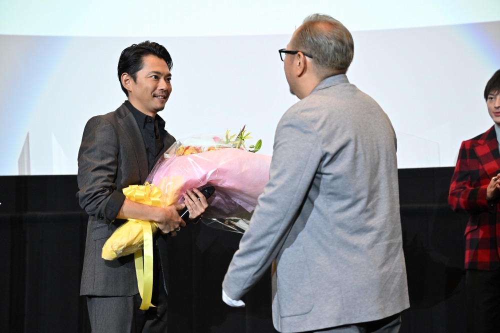 イベント後半には、原作の松本裕士がサプライズ登壇し、今井に花束を贈呈する一幕も。自身の役を演じた今井と初対面した松本は「大変な役をやっていただき本当にありがとうございます。感謝しております。ありがとうございます。やっと会えました。お三方、本当に大変だったと思います。監督もありがとうございます」と何度も感謝を伝え、今井は「なかなかお会いする機会がなくて、僕は裕士さんの原作本を読んで自分なりに準備をして、台本をいただいて、監督に支えていただき、いろんな役者さんとともにこの撮影を歩み抜くことができました。自分で言うことじゃないんですけど…」と涙で声を詰まらせ、「この役を演じるのはすごく難しくて、複雑で、当時、裕士さんが抱かれたつらさとか、そういうことを考えれば考えるほど“これでいいのかな”とか不安になったりしましたが、自分なりに裕士さんが当時感じていた思いをどこまで描けるかわからないけど、とにかく丁寧に演じたいという思いで演じさせていただいたので、今日お会いできたことはもちろんですが、このようなお言葉をかけていただけて、本当にこの作品に巡り会えてよかったなと思っています」と語り、涙を拭った。