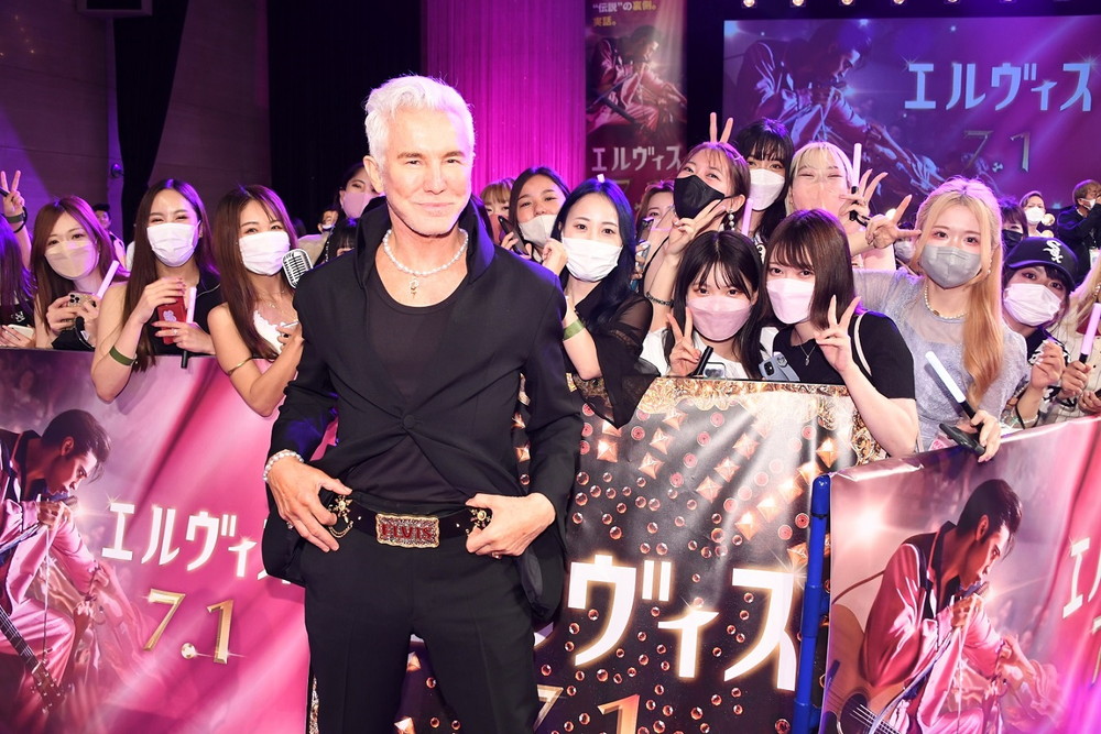 白いスーツを身にまとったオースティンと、真っ黒なスーツに「ELVIS」の文字が輝くベルトを身につけたバズ監督は、写真撮影や会話に快く応じ、集まった日本のファンとの交流を楽しんでいた。