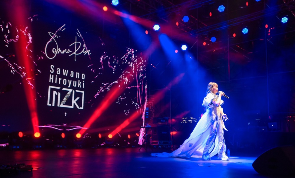 6月18日のステージに出演したのは、今年4月にSACRA MUSICからメジャーデビューした澤野弘之プロデュースの新人、SennaRin。国内でもまだワンマンライブを行っていないなか、海外での初ライブパフォーマンスが『Anime Village(Jedda Season 2022)』のステージとなった。今回は自身の楽曲だけではなく、“SennaRin from SawnoHiroyuki[nZk]”として「Into the Sky」(『機動戦士ガンダムユニコーン RE:0096』オープニングテーマ)、「aLIEz」(アニメ『アルドノア・ゼロ』エンディングテーマ)など、SawanoHiroyuki[nZk]の人気楽曲を現地のファンに届けた。
