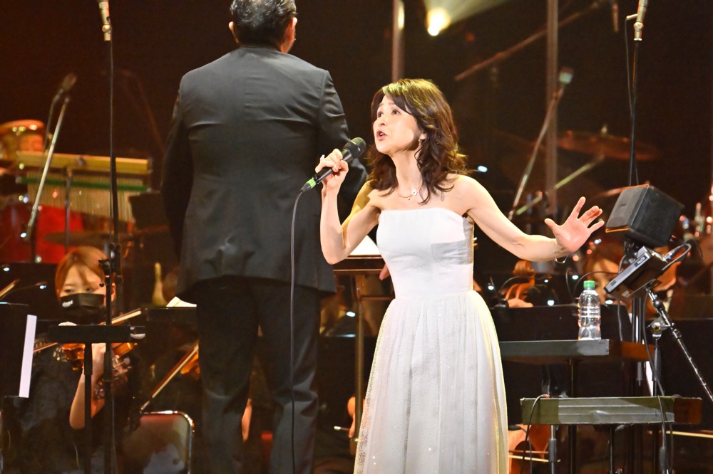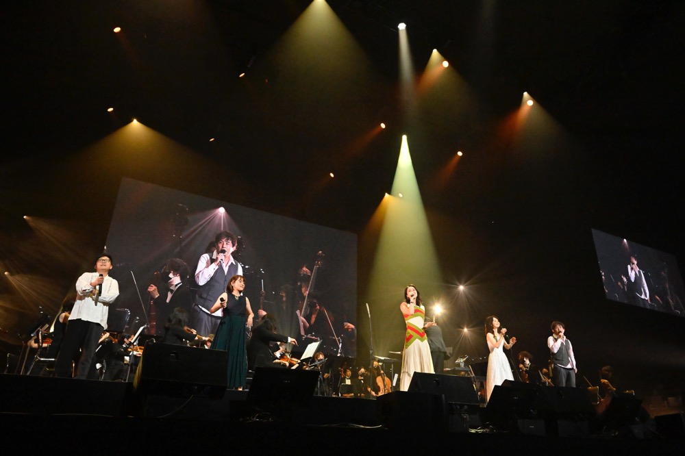 「秋の気配」は矢井田瞳と辛島美登里のコラボで披露。男性目線の歌詞がさらに愁いを帯び、伝わってくる。佐藤竹善が歌った「生まれ来る子供たちのために」は、このポップス×シンフォニックのコンサートの、ひとつのクライマックスと言っていいほどの“意味”と感動を伝えてくれた。小田和正が曲に込めた思いを、ひとつ残さず、かつそこに自身の思いを乗せ歌う佐藤の思い、オリジナルの温度感を活かしながら、さらに歌をまっすぐ、感動的に伝えるアレンジとオーケストラの演奏。ステージ上にいる全ての人の思いが“塊”となって、客席に向かってきて、そして包み込んでくれる。